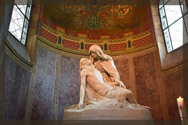 should assist Him when He was dying nailed to the Cross. Mary suffered and, as it were, nearly died with her suffering Son; for the salvation of mankind she renounced her mother’s rights and, as far as it depended on her, offered her Son to placate the divine justice; so we may well say that she with Christ redeemed mankind.”